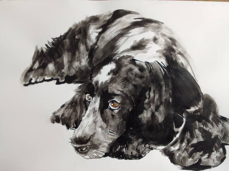 Cocker spaniel Acrylic on paper 84 x 60 cm By Soso Kumsiashvili 2022