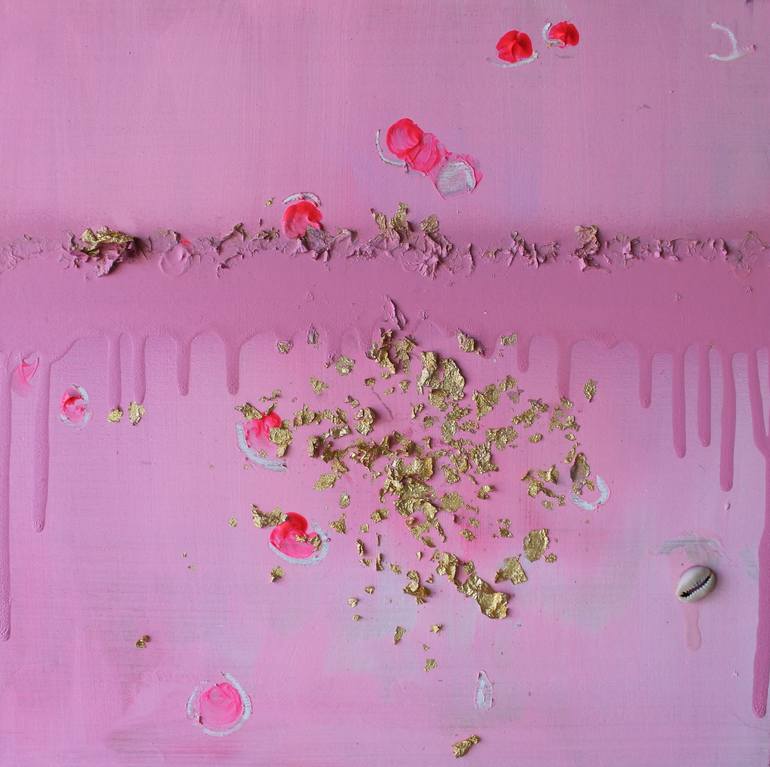 Creating this piece was an act of love. Acrylic paint, spray paint, imitation gold leaf, oil pastel, cowrie shell, and glue came together for a concise expression of wisdom from my inner child (often the most powerful voice in the room). Each aspect of the piece adds another layer to it's meaning. ...