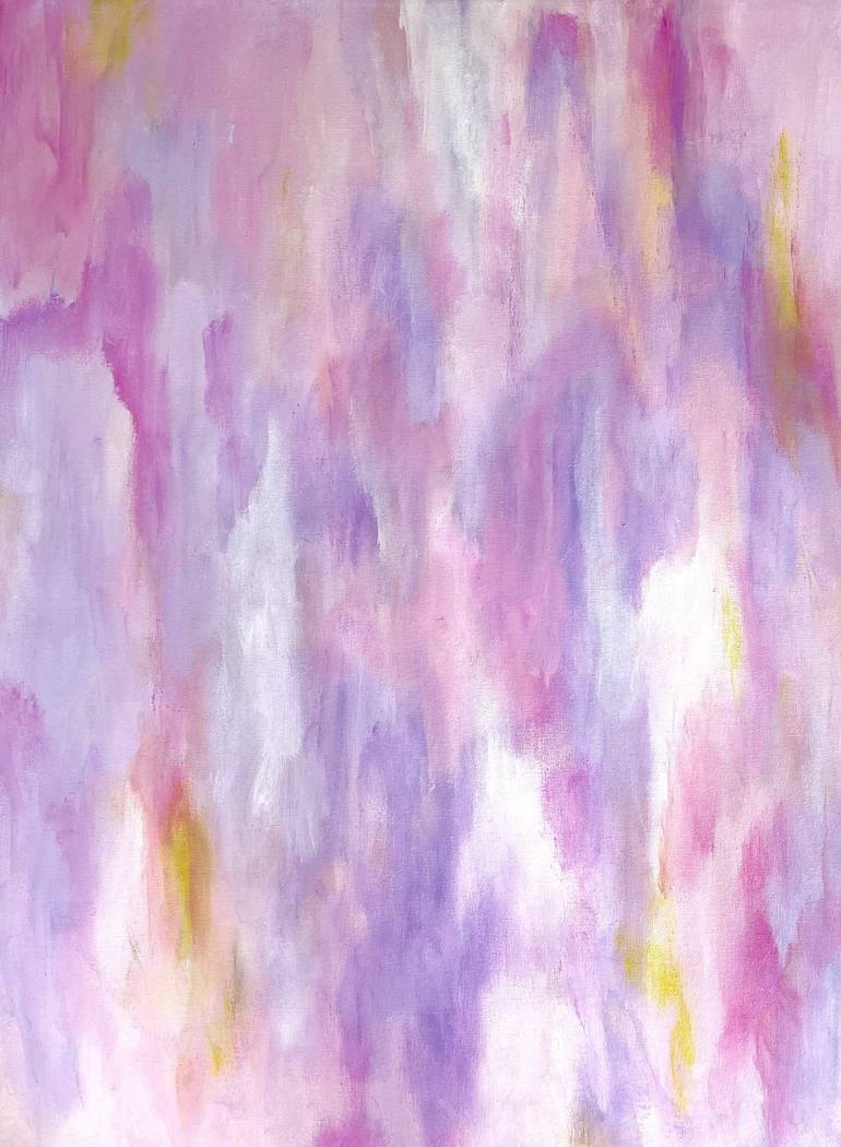 Abstract art evokes a feeling for the viewer. It can energize, calm or soothe. The pinks, purples and white in this painting create a softness for any room.