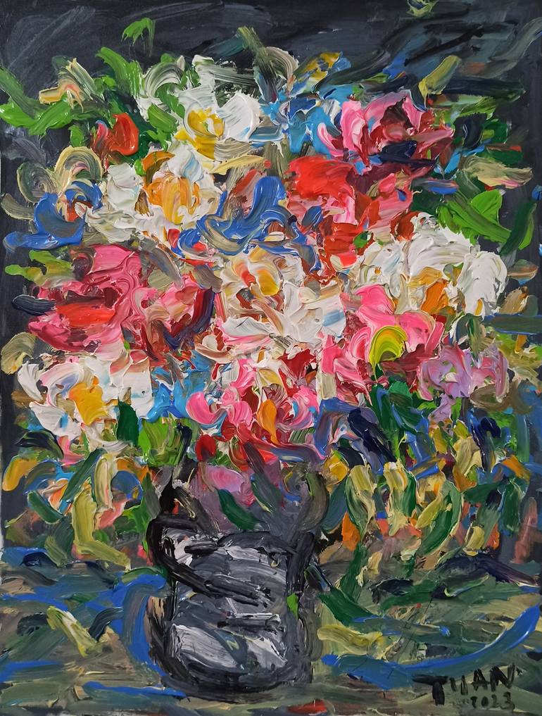 Colorful Dance in Blooming Flowers Discover the vibrant beauty of nature through the work “Colorful Dance in Blooming Flowers”. The painting is like a vivid picture of fresh flower petals, bobbing and swaying in the spring breeze. The light and dark, bold and light shades blend together delicately, ...