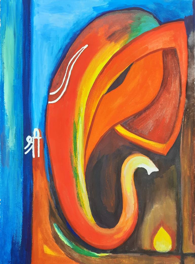 This vibrant painting of Lord Ganesha, created using poster colors on A4 sheet, captures the essence of the beloved Hindu deity. Lord Ganesha is revered as the remover of obstacles and the patron of arts, sciences, and wisdom. The large elephant head of Lord Ganesha symbolizes intelligence, strength...