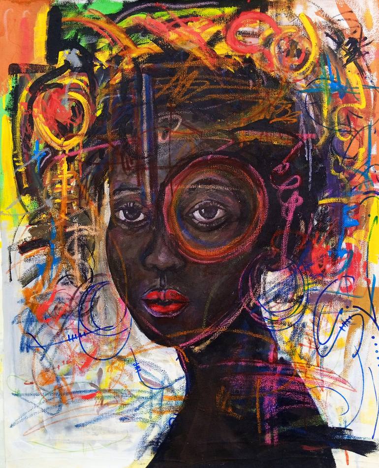 Original acrylic, marker, pastel, painting on canvas. ..... The painting portrays the colorful dreams of a black woman, will her eyes focused on achieving her dreams.. ..... Protect with acrylic varnish Includes certificate of authenticity Ship in a tube