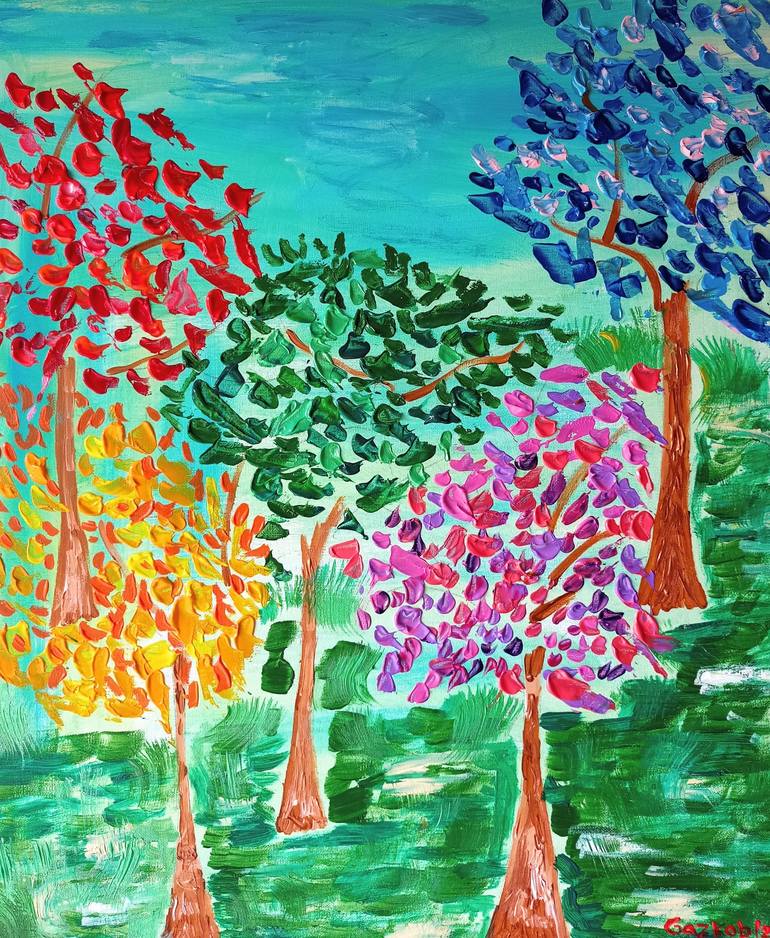 The forest with bright trees with different colors.We wish to feel like the trees every day.Bright!