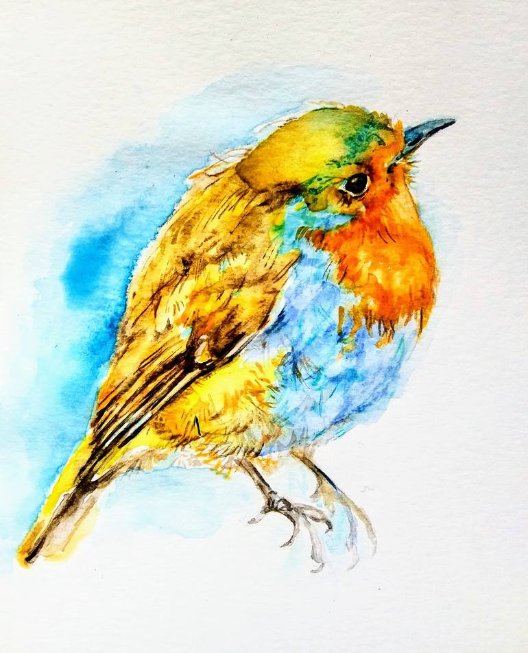 Original watercolor painting on paper Colorful nature Christmas robin animal art