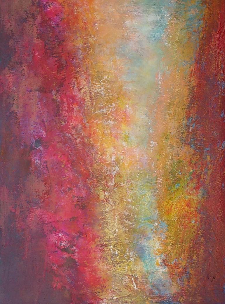 Modern, contemporary Artwork for a unique home decor. Original painting on stretched canvas. Size 28,7" x 21,3" x 0,8 ". Acrylic painting varnished. Colors : black, white, purple, pink, red, orange, yellow, blue, blush. Hand painted and signed. Sides are painted in black. I am a self taught p...