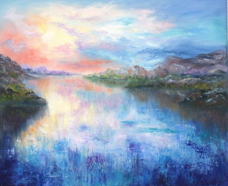 Colorful sunset is a landscape painting on a cotton canvas, it is painted using high quality oil colors, no frame required, ready to hang. The sides of the canvas have been painted and it is a continuation of the painting. The painting is finished with coats of varnish which will protect the paintin...