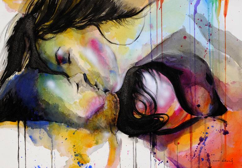 Lovers in a passionate embrace. Arches watercolour 300gsm paper.