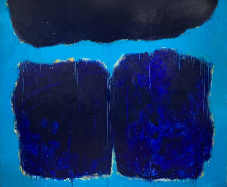 This is inspired by a pair of Robert Frost poems, Come In and Nothing Gold Can Stay. (See below) Exploring the depths of the human psyche through bold blocks of contrasting colors. The dark tones represent the profound mysteries of the mind, while the vibrant blue invokes a sense of boundless possi...