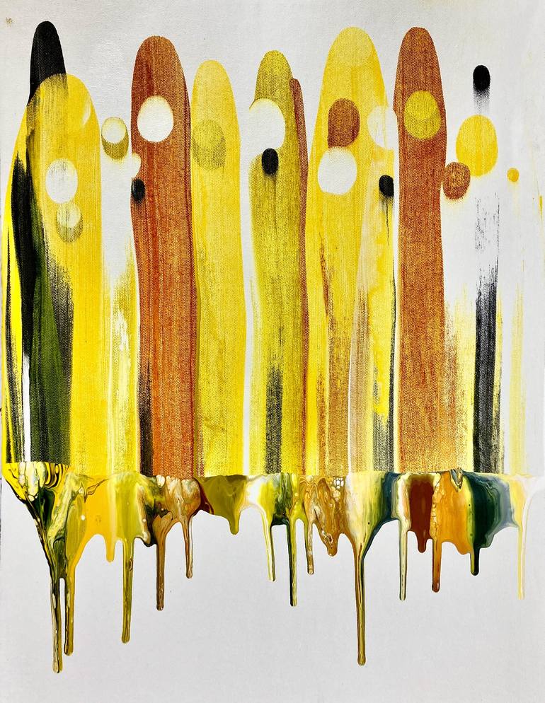 Acrylic paint on canvas. Blobs of paint wiped on the canvas and the rest left to drip down to play with textures and techniques on this artwork. Painting shipped rolled safely in a tube with Certificate of Authenticity.