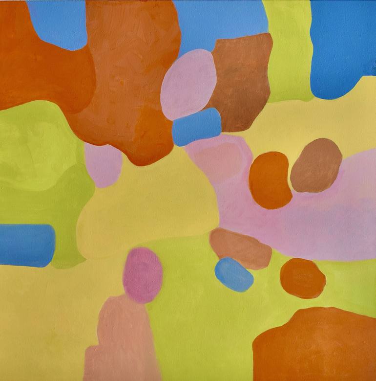 'Composition' is a painting I did after completing 'Green'. It was the end of the winter and still cold in the studio which slowed my movements, so no fluid forms but set forms, one next to the other, in light acrylic colors. As I turned this painting 90 degrees for each painting step, it can be vie...
