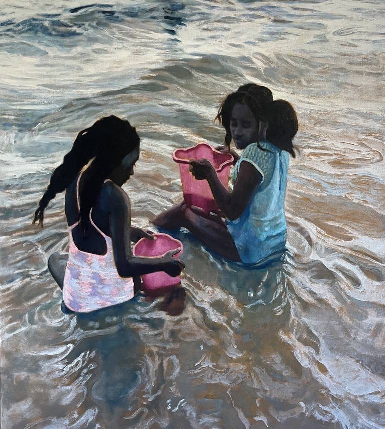 When I worked at Mana Contemporary in New Jersey in the summer of 2023, we went to the beach on our last day. That day was such an inspiring and exotic experience. This painting is based on a photo I took of these two girls sitting by the waterfront that day at Coney Island, New York. It is created...