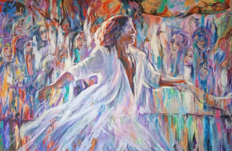 A Being of Light is going through the crowd of people ..maybe he is not even a Human, but an Idea of Love, Relations, Tenderness, Care, Friendship, Connection...Light of Heart... They are waiting for this Light...But as it is usually, they cannot see his face...People never can see a Face of Eterna...
