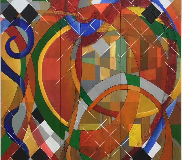 Carla Armour: 'Constitution'. Acrylic, ink and Sackcloth on Canvas It has taken me years to resolve as I have allowed the materials and colors to fall into place. It had to take the time it took to get the message right. Although I have been painting with grid elements and hessian for almost 3 de...
