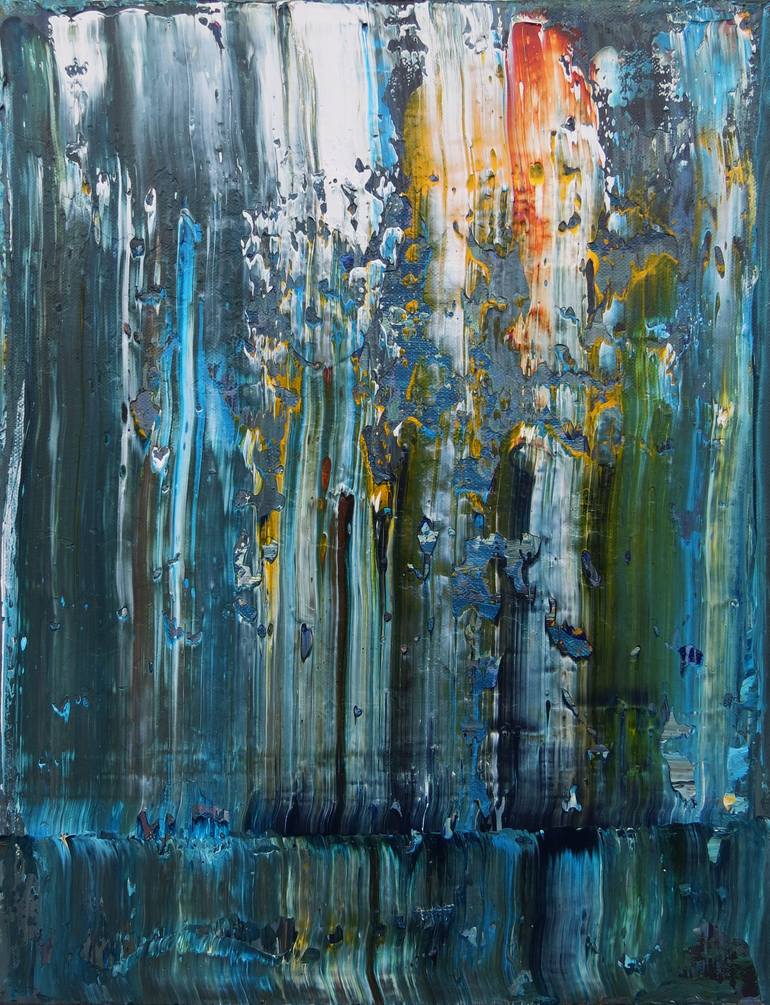 Original White, Green, Black, Blue abstract painting by Leon Grossmann Abstract painting. Original abstract art. 15,7" width x 19,7" height x 1,6" depth. (40 cm Breite x 50 cm Höhe ) It was painted with professional Acrylic Colors. Paint on Canvas. The Picture is unframed. I sent it stretched (...
