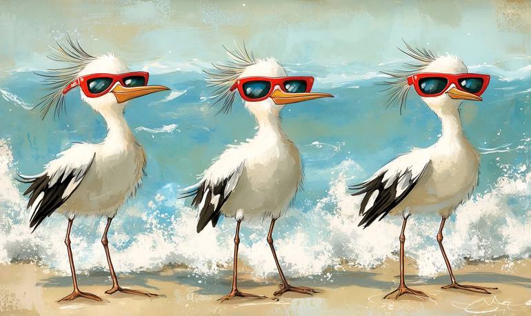 I was inspired by a dream to create an image of happy birds wearing cool sunglasses at the beach. Wish you were here!