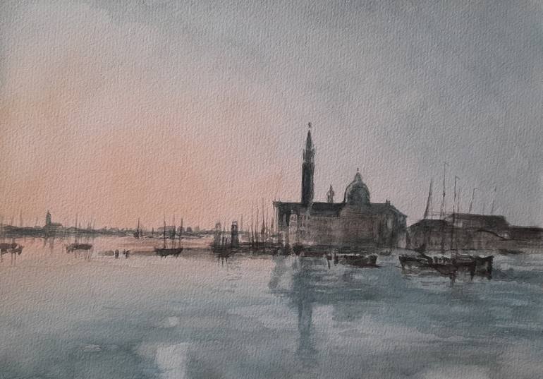 this is a watercolor inspired and copied from an original by W. Turner, great master of romantic painting who inspired many of my landscapes.