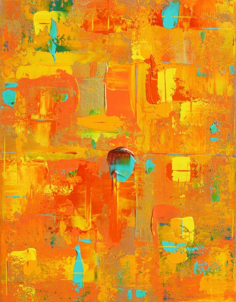 Abstract Acrylic Painting. Use of Gallery Wrapped Cotton Canvas 11 x 14 x 1.5. (6 Layers) I like building my canvases with layers of paint. With this small Abstract I have added 2 primer layers. I have then created my concept with the next 4 layers. On the top layers I have created with the colors-C...