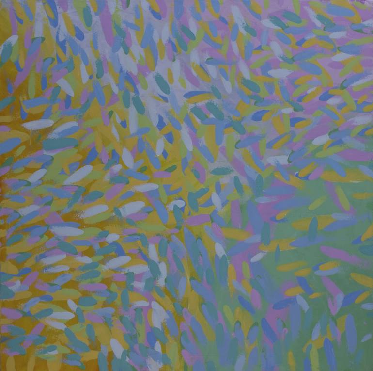 Non-representational improvisation color field painting inspired by Larry Poons .There was no idea nor a real subject matter that was abstracted. Color dictated the shapes that occurred. An attempt not to copy but to capture the style of his color and, strokes.The title only reflects what is somet...
