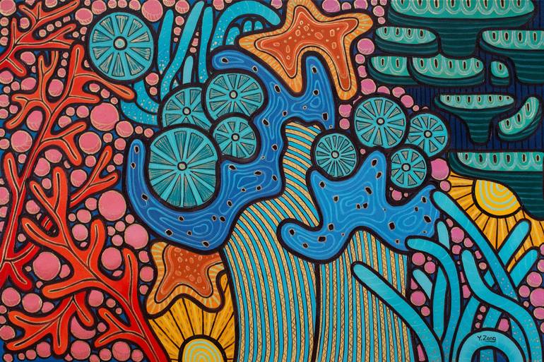 This is my original abstract oil painting "Coral reef" series. One is "Coral reef blue" and the other is "Coral reef pink". So far, I've been trying to develop my abstract painting style. And I think this "Coral reef" series represents myself more clear than "Backyard birds" and "Freshwater fishes"....