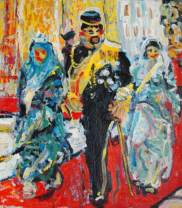 It was painted with professional oil paint on canvas. Stretched on a wooden frame.