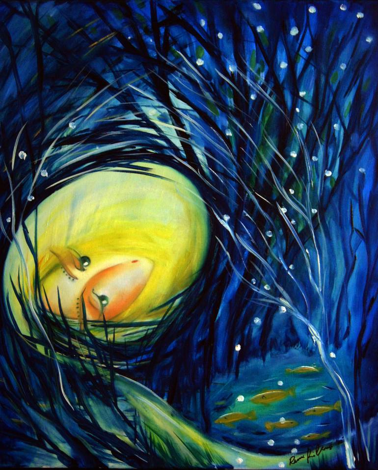 As an artist, I feel connected with art in a very special way. I feel that art is something that does not belong to me, or rather it is something that comes from the Universe and pours out from me as a stream of color hues, always painting in a different way the Road to my own self. The magic of colors, their combination, the harmony of spots and lines gives life to this Road which turns the walking along it into a real communion with the spirit. During the process the painting turns into an inspiring meditation, oriented towards you yourself, unveiling the beauty in you and through you. As a young author, I would not say that I have a concrete technique. I am rather trying, by means of images and symbols, to lend mysticism and enchanting beauty to the world in me and around me. What excites me deeply while I am painting a face is the state of mind that is hiding behind it, the world that it is carrying in itself. The way I approach my paintings is with Love, gushing out from me to you. For me painting is a boundless muse of inspiration, an endless Road, which the soul follows in order to make its way back to the light of the Eternal beginning, the source of Life.