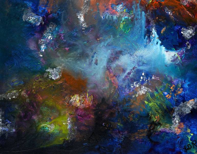 The convergence of cosmos. As humans we consistently evolve physically, mentally, emotionally, and spiritually as we converge with our constantly changing environment and the souls within it. Mixed media on canvas. Textured. Attached to one inch frame