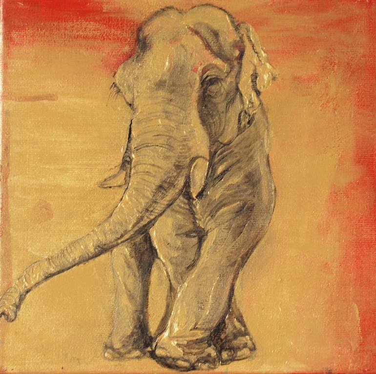 Red, Gold and Black Asian Bull elephant in a coy it coy, or about to hit someone?