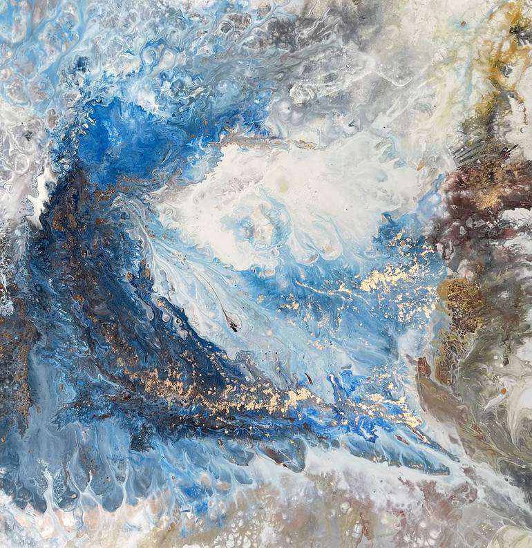 The sea was rough; the waves came crashing to the shore. It was a beautiful sight from above. The way the waves creates a unique pattern each time. The colors are lovely, white, shades of blue and brown from the sand, together bring forth this beauty. A very colorful and creative painting by the art...