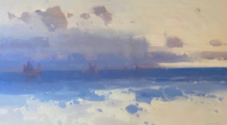 Artist: Vahe Yeremyan Work: Original Oil Painting, Handmade Artwork, One of a Kind Medium: Oil on Canvas, Year: 2021 Style: Impressionism, Subject: Cream Ocean, Size: 37.5" x 67.5" x 1'' inch, 95x172x3 cm, Unframed, Stretched on Wooden Bar, Gallery Wrapped, Ready to Hang. Yeremyan is an Amer...