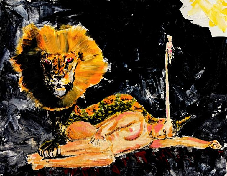 This is one of a series of painting based on the apocryphon of John - attributed to John the Baptist. Gnostic Christianity is super interesting. The Old Testament God is a monster and the endgame of life to overthrow him. Search for my blog or website to learn more! Sophia tried to hide Yaldabaoth ...