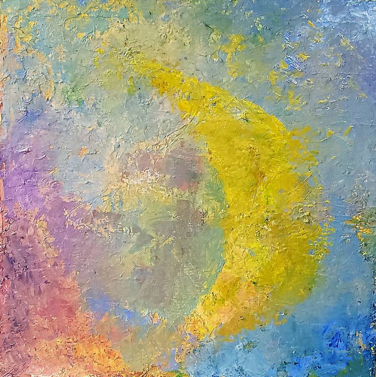 The moon is an endless source of fascination for artists and other humans and animals. We can't seem to stop looking at it! My painting is of the moon in its crescent phase, with shades of yellow and green and gray. The acrylic paint lends itself to blending and underpainting , which I love to use t...