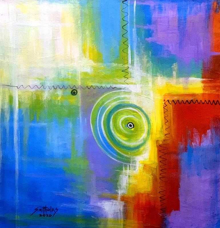 Title Crossroads Medium Acrylic on Canvass Year 2020 Crossroads symbolize an important decision that is unavoidable. The choice to continue the same way, which would be a straight path, no longer exists.