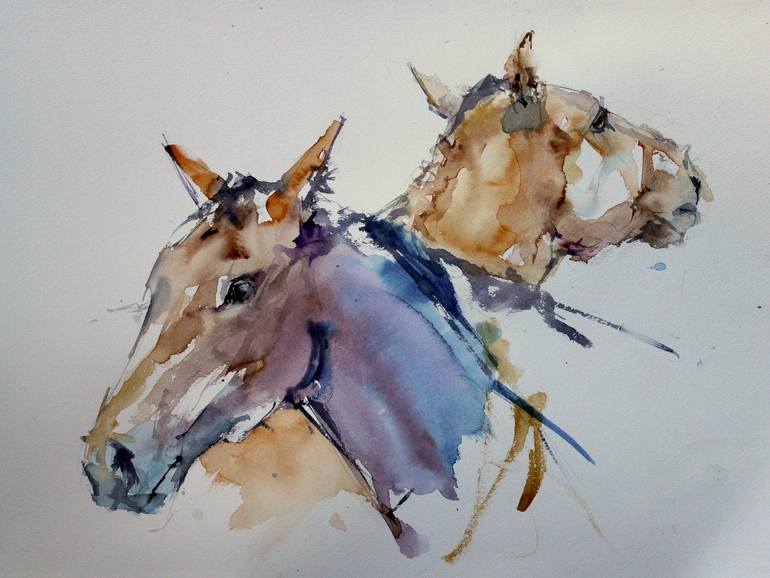 "Crossed horses" ("Cruzados") Watercolor on paper Arches. 55 x 38 cms. 2016.
