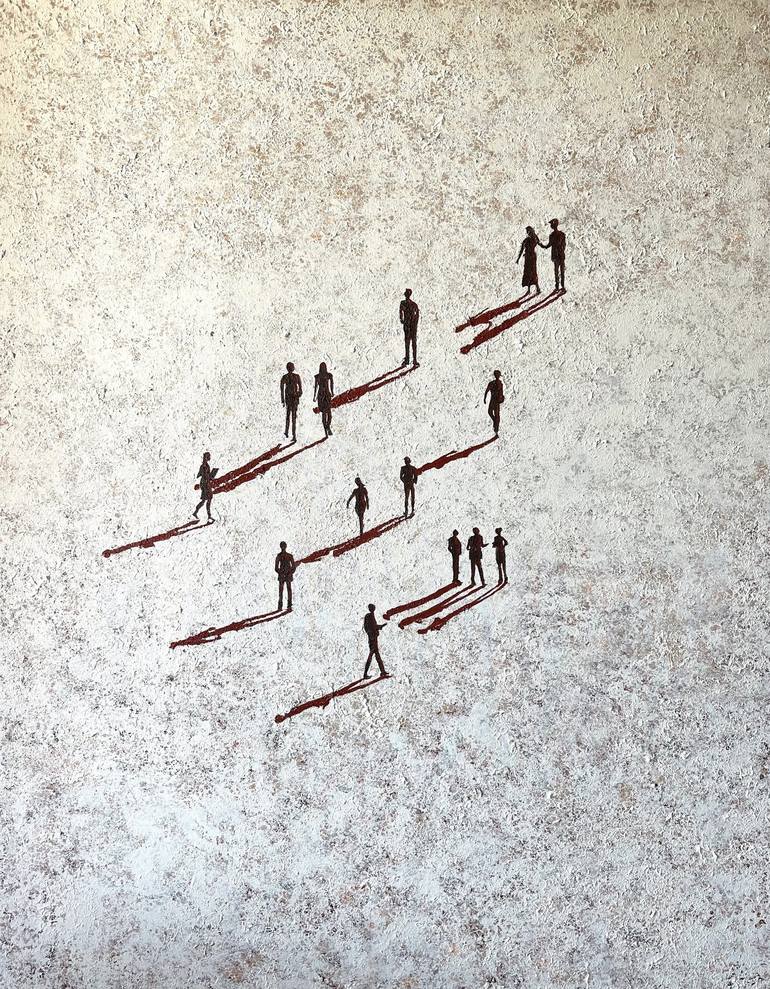These couple of canvas are telling an scene where a woman alone look at the people who crossed her life.