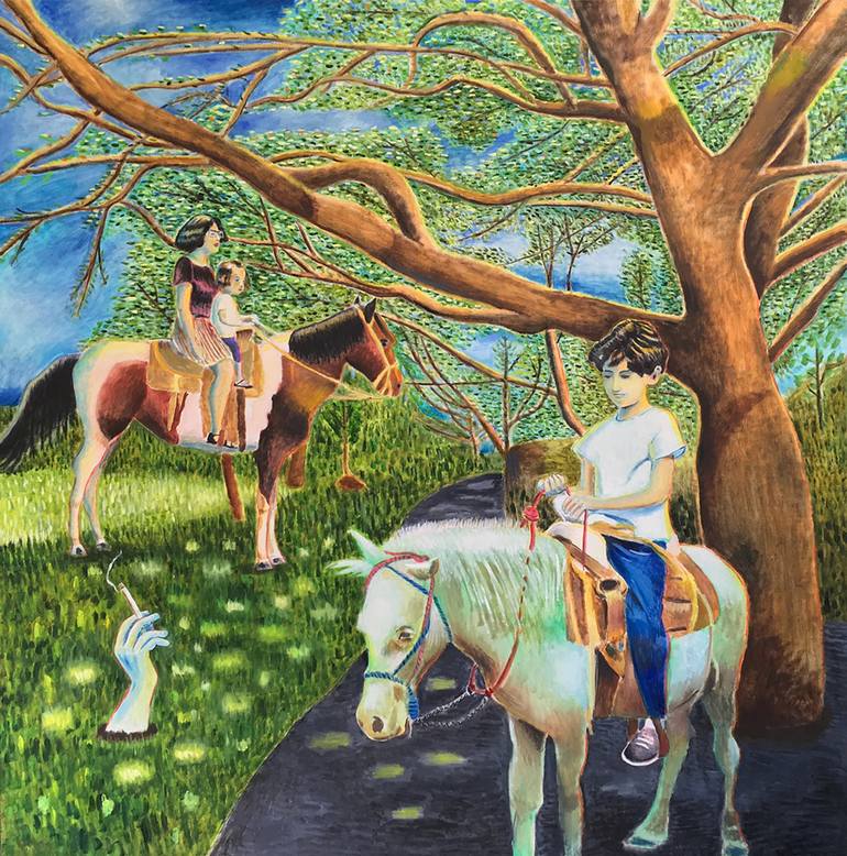 This was a perfect day in my head where I imagined my children forever young in a perfect place. The hand represents me quoting smoking and that helped me stay in my family.
