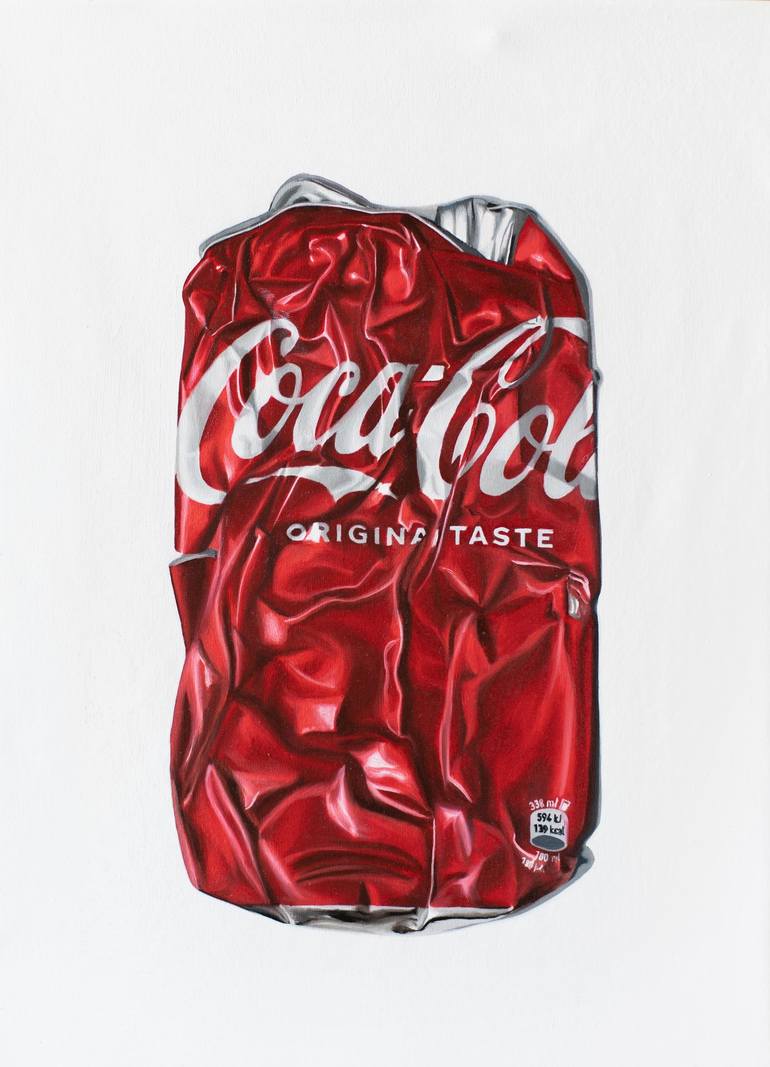 Title: "Crushed Icon: A Coke Story" This 30x40 cm oil on canvas captures the timeless allure of a crushed Coca-Cola can, a familiar icon reinvented through the lens of fine art. This piece vividly showcases the vibrant reds and intricate folds of the can, emphasizing both its beauty and impermanenc...