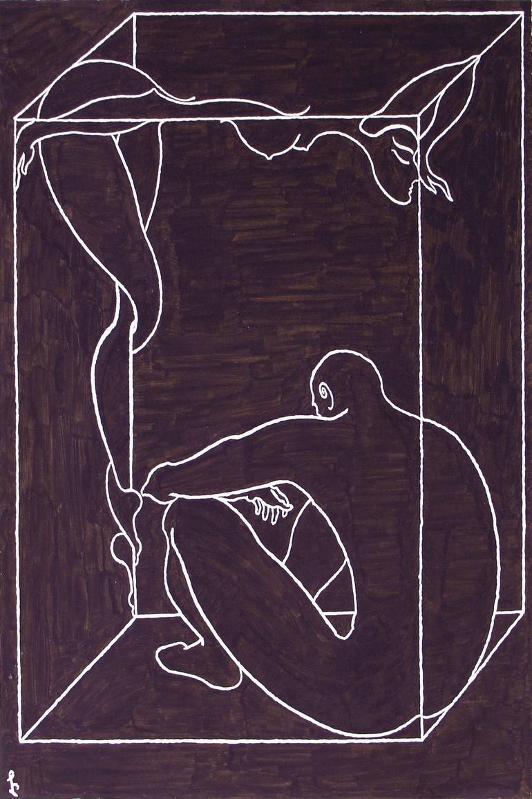 Lia Chechelashvili uses lines to describe relationships. Her painting The Cube depicts two figures: one female figure made of weightless line that freely moves about as it describes the female form and one male figure that exists more statically in the lower region of The Cube. The play between Chec...