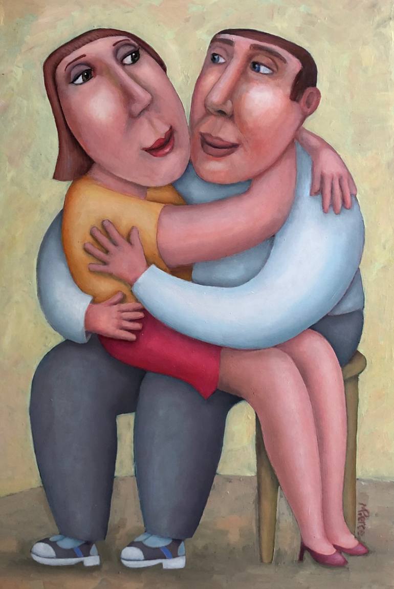 These two figures wrap around each other, not wanting this to end. They have found their partner and are happy. The composition fills the space so that there is no room for anything or anyone else. The painting comes with a white mount making it easy to frame.