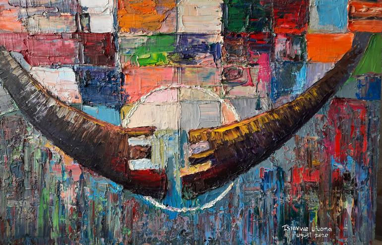 This painting depicts cultural sounds and melody in an abstract rendition. This work will be delivered in a box. Oil on canvas Doesn't require framing