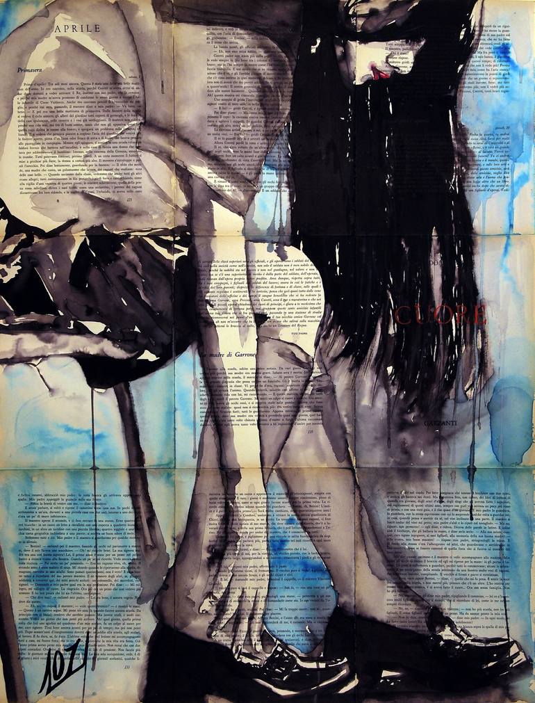 This painting is a summary of one of the hardships kids have to endure to go to school, sometimes the uniform shoes hurt the feet. From 1999 i was start to decorate and selling in Italy furniture with ancient and old pages of vintage books or newspapers, then I combined the ancient technique of pape...