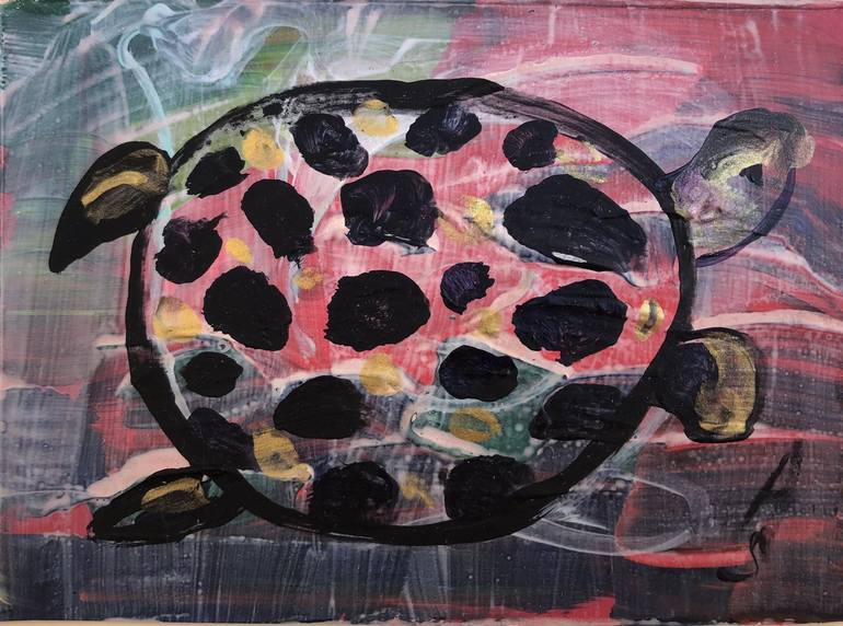 The turtle brings good luck. This little painting was made by me with love and feeling.