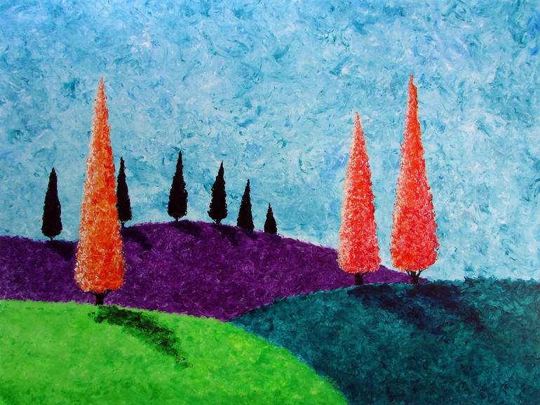 Recently I was playing with the ideas of designs which I can arrange within a rectangular by using the cypress trees. I first painted them on a small card. Later I picked the most outstanding ones and painted them on big canvas. My used of colors are contrast and bright, created a harmony and comp...