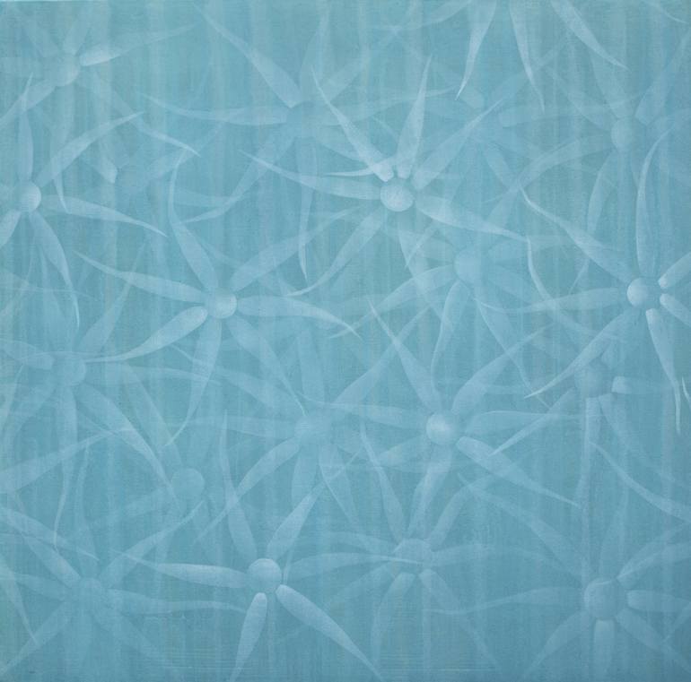 Dandelions. This original abstract painting on canvas features a captivating blend of geometric and natural elements, harmonizing shades of blue and white. The application of multiple layers of acrylic paint creates a beautiful sense of depth. The edges are painted, so a frame is not required. Natu...