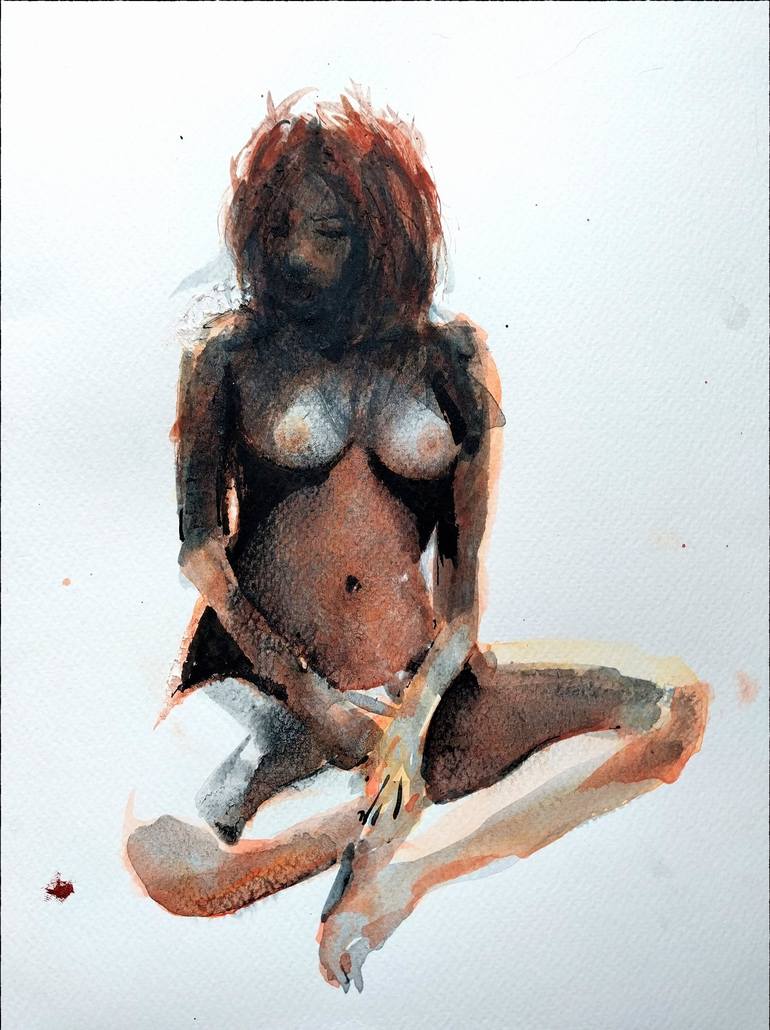 A watercolour done without a preliminary pencil drawing with additions of black ink with brush. I have had a fascination with chiaroscuro long before I even knew it was a thing. I tend to paint and draw in terms of shapes of light and dark as a preference. I like my nudes to be loose and fluid in an...