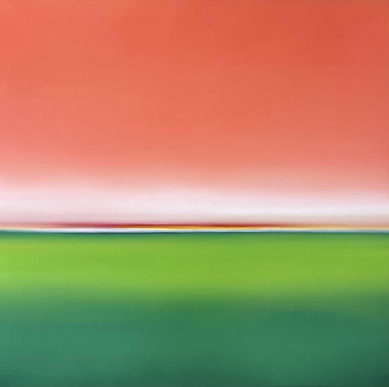 Bright energetic abstract seascape with a minimalist colorful gradient. Original oil on canvas painting perfect for modern interiors and contemporary spaces. DEEP INSIDE is a middle size abstract seascape from my Horizon of Emotions series – an energetic, minimalist gradient oil painting created to...