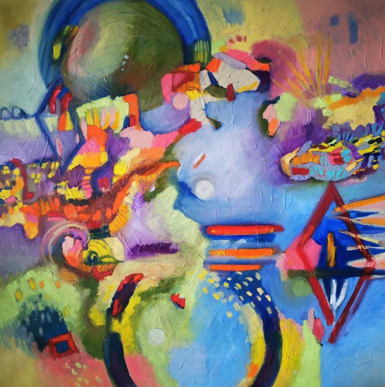 Painting was represented in solo exhibition in the Lithuanian Parliament. In mythological history, Delas is the island where the twins sun god and moon goddess were born. We also see the process of birth, not only of the gods but also of the souls of femininity and masculinity that are present in ea...