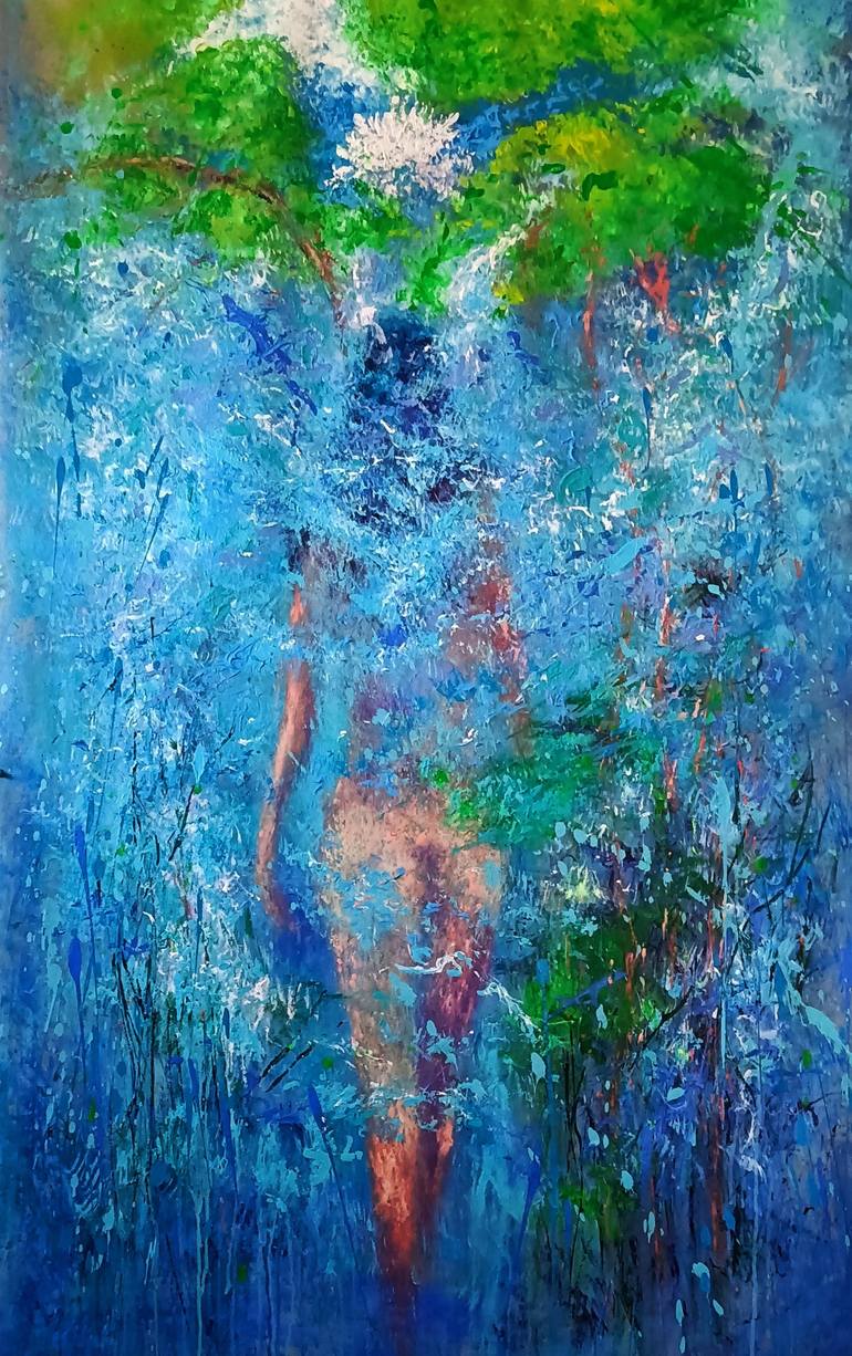 Primer cuadro de una serie, basado en la mitologia del agua. La obra esta trabajada con tecnica casi expresionista, desde el impresionismo, refleja la belleza natural atraves de una vision en la profundidad del agua, pero recreando paisajes que exinten , en bosques, mares o lagos, siempre acompañad...