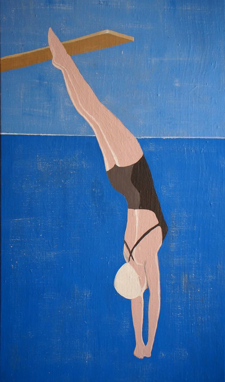 Inspired by water sports and vintage figures Oil on primed canvased MDF panel, brilliant finish. Back signed, certificate of authenticity, MIBAC export certificate.