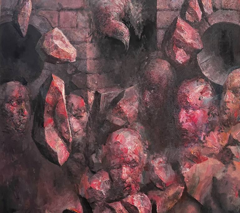 This painting is the tenth painting in the Divine Comedy series. I made it inspired by Dante's Divine Comedy. The picture depicts the situation of the lovers in the sea of pain. Love and pain are together in this picture. This is why warm colors dominate.
