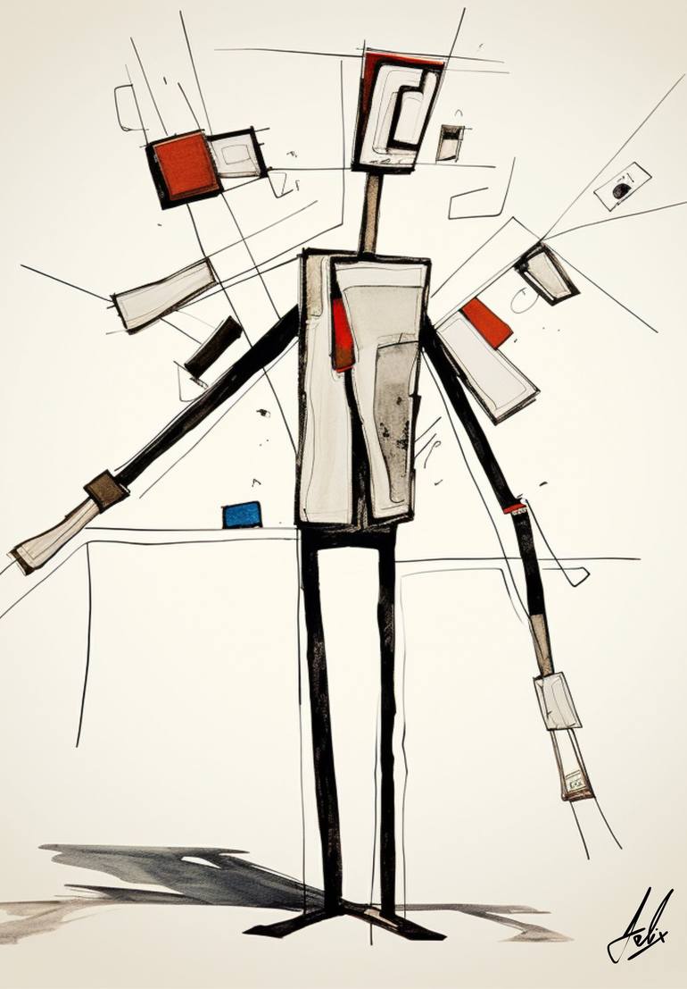 "Dad's A Robot" by King Felix is a thought-provoking artwork that offers a glimpse into the future of humanity and the complex relationship between life and robotics, exploring themes associated with transhumanism and the technological singularity.